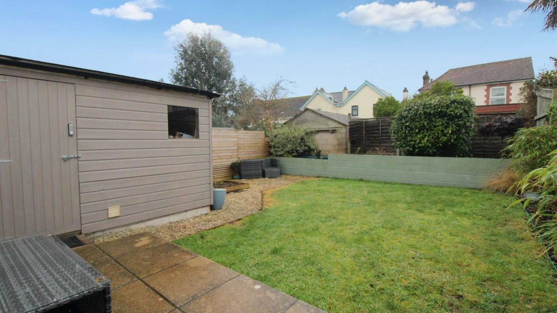The rear garden is enclosed and has a patio slabbed area, with the remainder being laid to lawn and gravel chippings with surrounding flower borders. There is a large timber shed which features power and lighting, with space for a washing machine and tumble dryer.